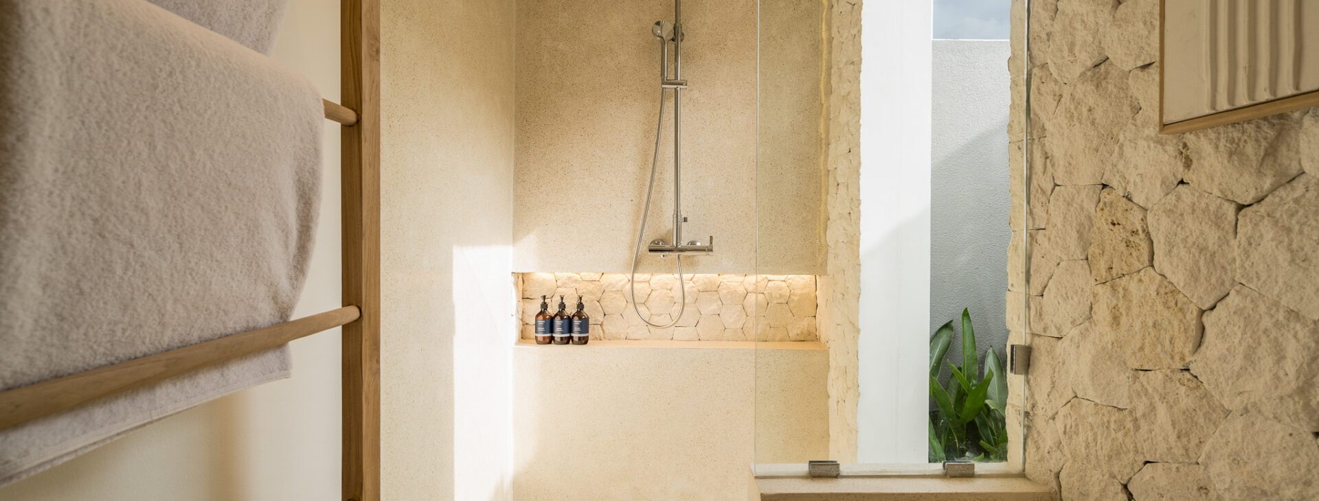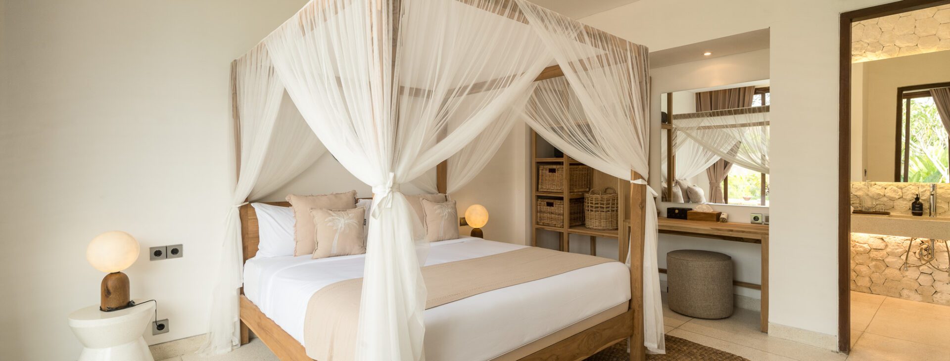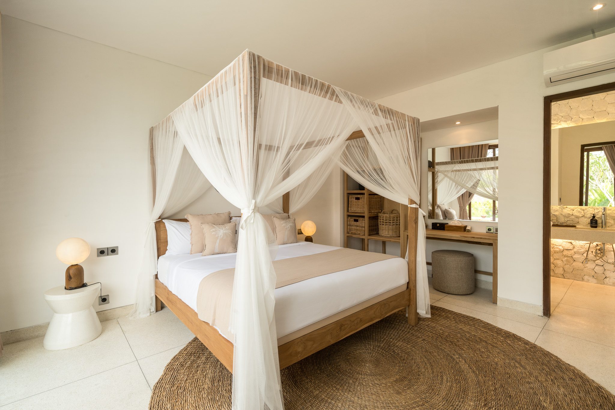 Each bedroom at Villa F. includes a queen-sized bed, smart TV, air conditioning, and an en-suite bathroom, providing a private retreat after a day of adventure. For added comfort, one bedroom features a mosquito net and an outdoor shower, blending traditional charm with modern convenience.